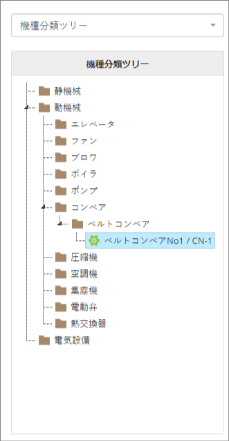 「設備管理の匠WEB」版では複数のツリー表示によって、確認したい機器台帳がどこにあるかわかりやすく表示します。