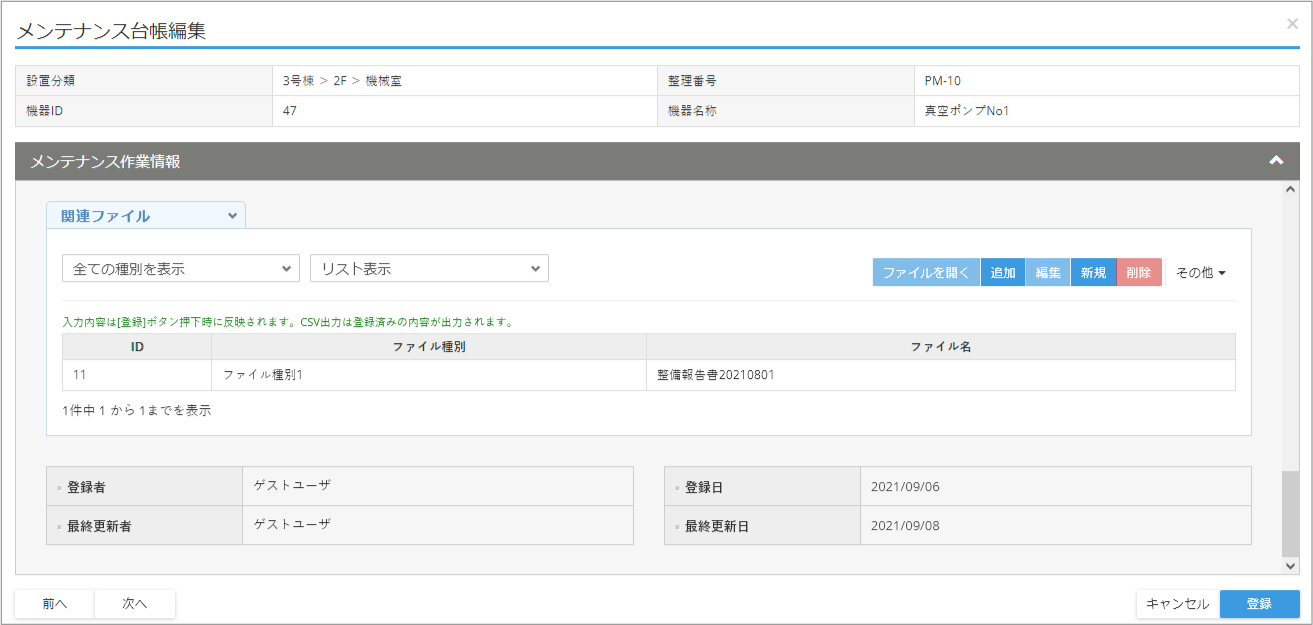 「設備管理の匠WEB」版では各種ファイルを登録できます。