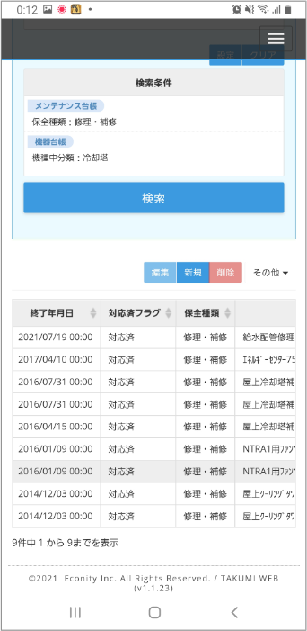 「設備管理の匠WEB版」はメンテや故障の記録、作業予定等、各種情報を検索し必要なデータを入手しやすくなっています。