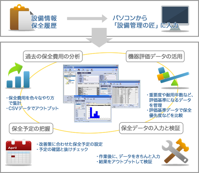 「設備管理の匠」で情報管理を進めれば、保全費用の実態を把握できます。