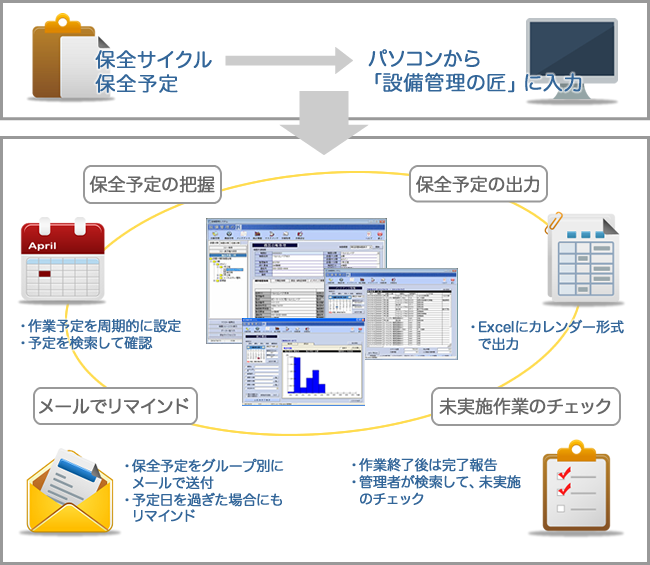 作業終了後、作業報告を設備管理の匠に入力するルールを作っておいて下さい。