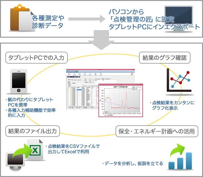 「点検管理の匠」は点検や検針結果をデータベース化し、活用しやすくするためのソフトです。